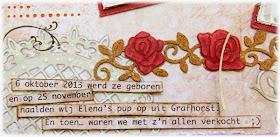 Het is nu, na een half jaar, al leuk om terug te kijken hoe ze veranderd is. Dus is het goed om wat data te onthouden, informatie die je anders gemakkelijk vergeet. De tekst heb ik geprint op bijpassend dessin-papier, in repen gesneden en met foam-tape bevestigd.