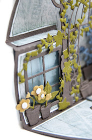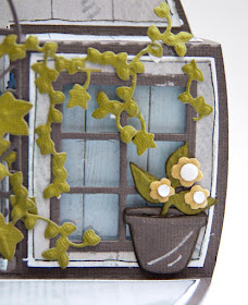 Door achter het raam een transparant (glas) en een stukje dessin papier te bevestigen met foamblokjes,