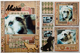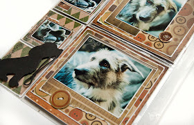 Het papier komt uit het blok Needles & pins 6011/0317. Het is misschien niet het meest toepasselijk thema bij een huisdier, maar de kleuren passen heel goed bij die van de hond.