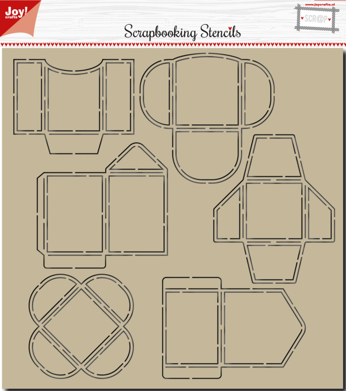 Het kleine envelopje waarin ik de teksttag heb gestoken, heb ik gemaakt met het aftekenstencil 6002/0864. Een cool stencil waarmee je wel zes verschillende van dit soort envelopjes kunt maken.