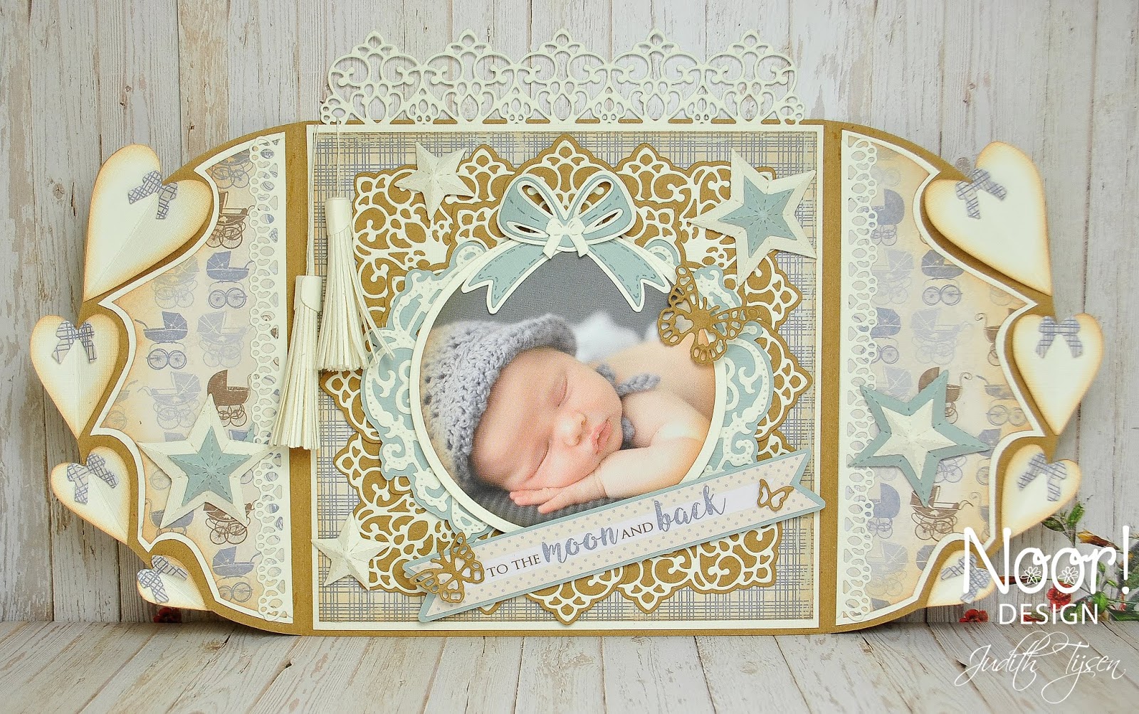 Het papier waarmee ik de kaart heb bekleed komt van paper bloc Vintage Babyboy 6011/0607.